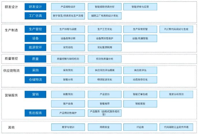 图2 制造行业AI应用场景(部分)