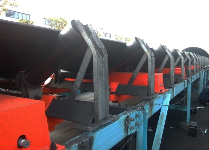 “皮带效应”是指皮带的硬度、弱性等物理特性对称重产生的效应。在皮带张力的作用下槽形皮带呈半刚性状,当支承点高度不在一个准直面时,皮带沿运行方向会产生波浪、其对称重产生的影响称之为“皮带效应”。