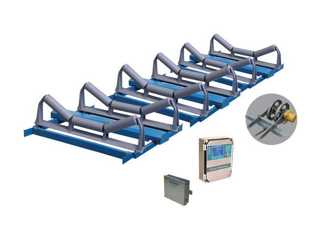 称重桥架上对称装有二组称重托辊支架,支架上的称重托辊将皮带上的物料重量传递给称重传感器。