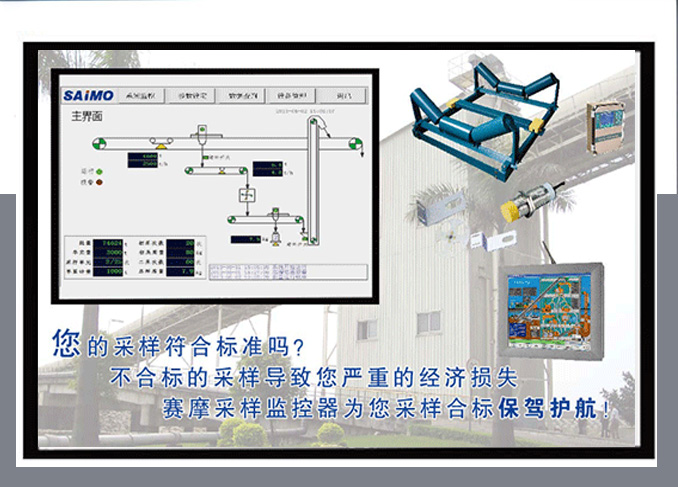 通过监测记录皮带秤与初级样品秤在初级采样机采样时的对应关系,建立输送物料量对应初级采样量数学模型,得到一定输送物料流量下初级采样机的采样量公式,由此公式作为判别初级采样机采样工作是否正常的依据。比如输送机输送物料流量是2000t/h时,经过初级样品秤得到的初级采样机一次采样量为160公斤,如初级采样机在流量2000t/h时,如一次采样量低于或高于160kg,初级采样机可能工作不正常,监控显示器报警,及时发现故障。采样比的监控