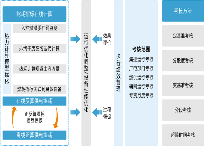 采用机理模型加数理模型相结合的方法,基于完全反平衡热力计算和生产事件寻因模型,提供稳态历史寻优指导,实现机组运行经济性全面节能诊断评价与优化。