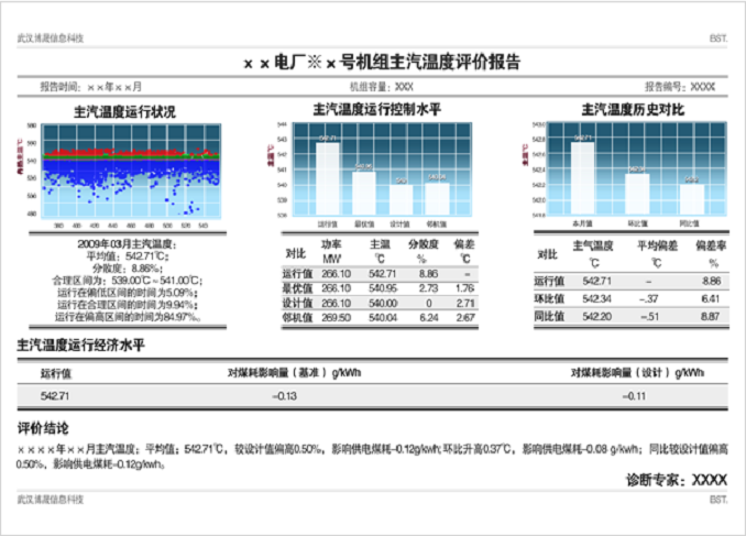 通过对分析数据进行条件筛选,开展典型工况下的数据纵横对比,解决生产管理人员开展节能分析时受到负荷变动、环境温度变化、煤质波动等问题带来的干扰,实现设备性能诊断、机组性能分析、指标参数评价、检修前后考评等功能,并出具相应诊断报告。