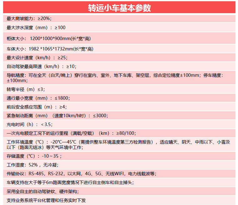 无人配送车具备L4级自动驾驶能力,可在室内外不同场景下运行,搭载定制化配送柜及码上到配送业务系统,可对绝地系列无人车进行车辆管理、停靠点管理、配送任务管理;可实现园区、厂区、社区、校园等场景预约配送、定时配送等服务。